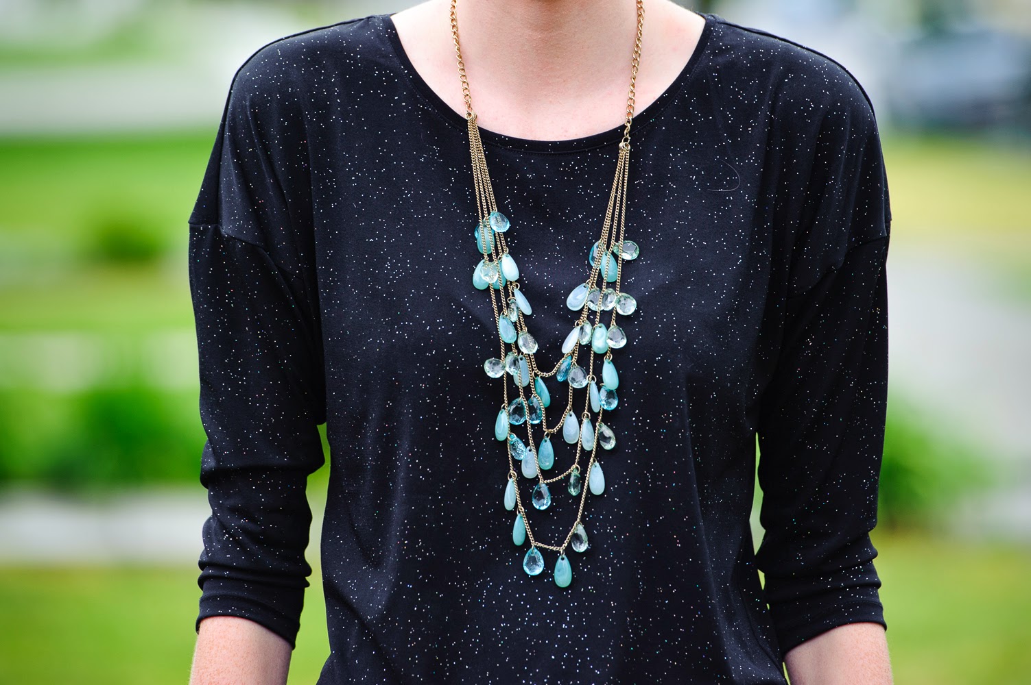 I feel like these kind of looser fitting shirts look better on girls with curves, but I liked this one so much I couldn't resist. I have a thing for rainbow sparkles.